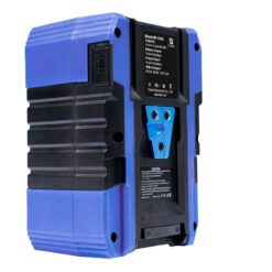 The 300Wh Cool Black Battery is from our Cool Black Series of V-Mount batteries. It has USB-A and two D-Tap sockets. The battery can be charged over a D-Tap socket or battery plate. It has a built-in protection circuit – as all our batteries do. So don’t worry about that. The USB-A socket is handy for charging accessories or a phone.