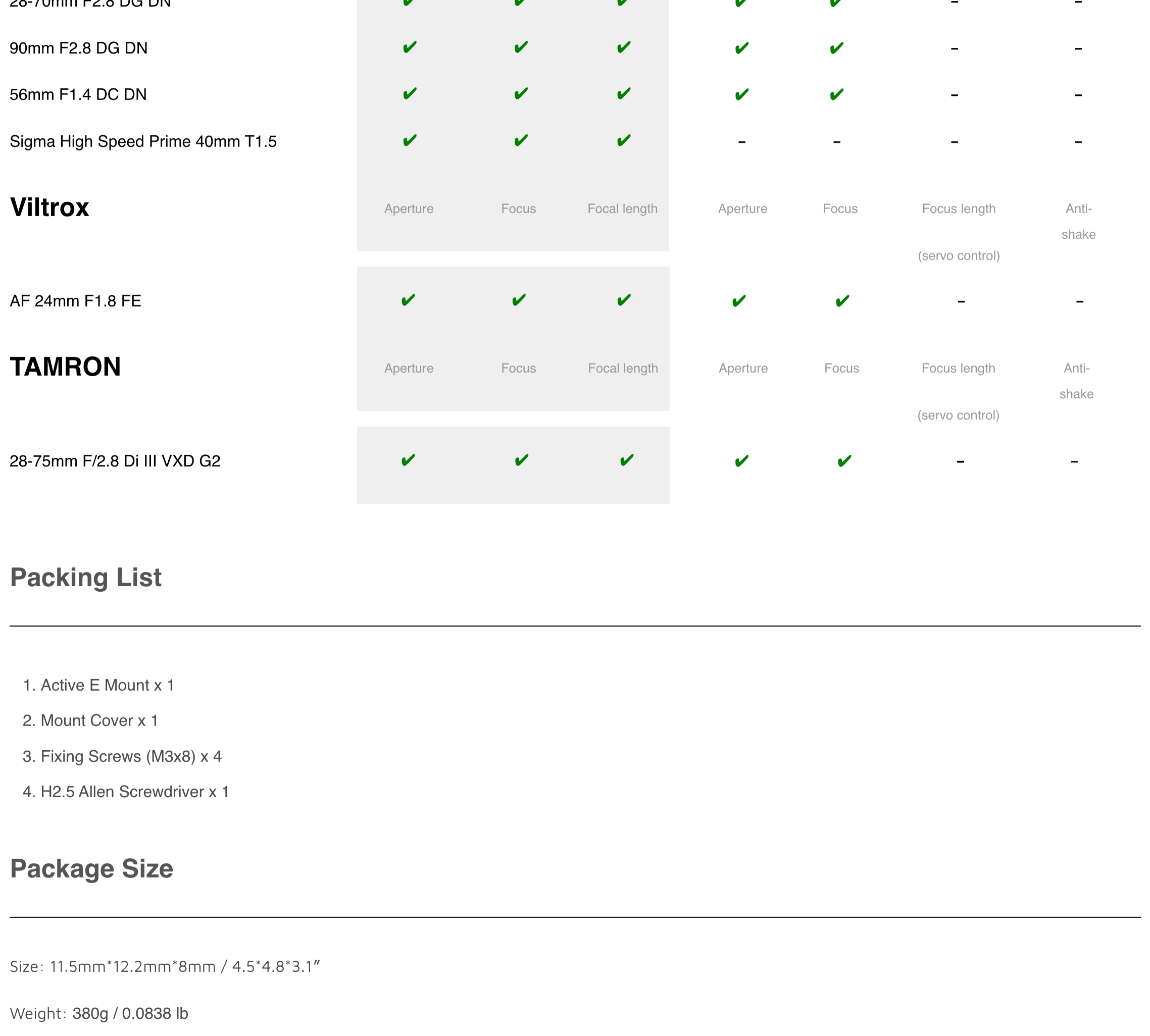 Compared with the passive E mounting adapter, Active E Mount with electronic contacts allows in-camera control of IRIS, focal length, focus and lens image stabilization, bringing sharper imagery and more efficient workflow.