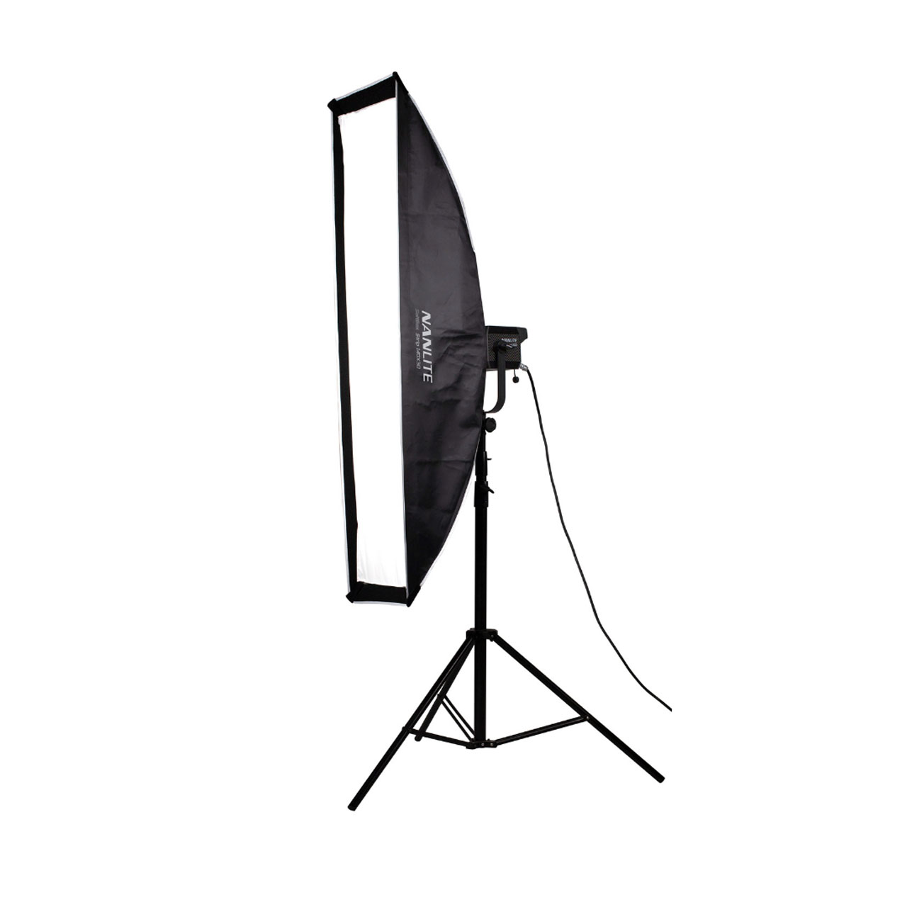 The NanLite Stripbank Softbox with Bowens Mount (12x55in). Dramatically softens the output of a light source with a high degree of directional control thanks to its long narrow form factor.