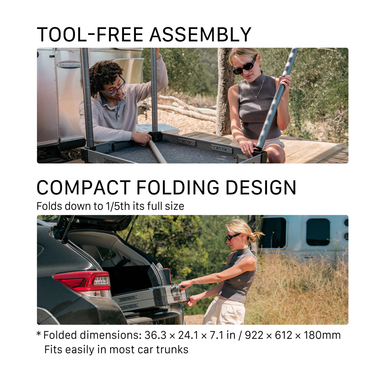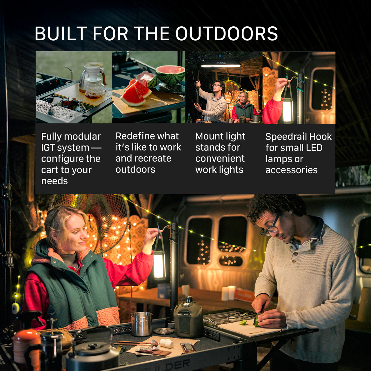 Designed with versatility and convenience at its core, the Boulder features a tool-free, quick-release system that allows it to be easily assembled or disassembled on the fly—perfect for fast-paced sets or life on the move. When not in use, the cart’s top and bottom trays combine to form a secure, hard-shell case, locking the components inside. An integrated handle and small built-in wheels transform the disassembled unit into a rolling case, making transport effortless between locations and easy to load into smaller vehicles.