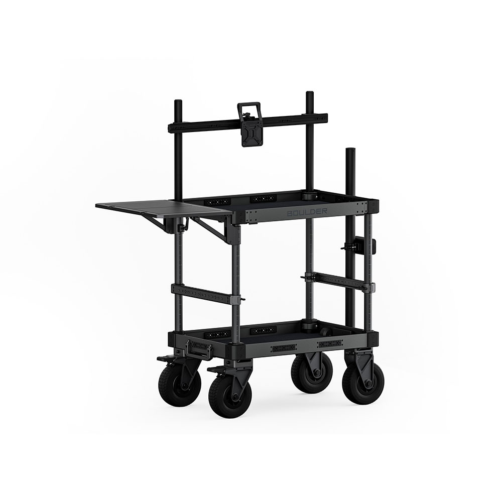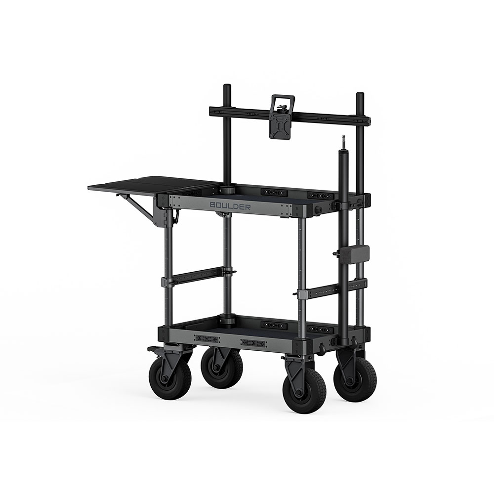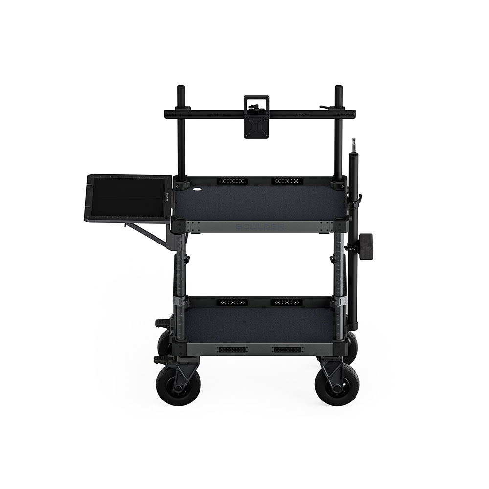 Built from durable aluminum, the Boulder offers multiple mounting options including 1/4″-20 and 3/8″-16 threads with locating points, enabling full customization with optional accessories. Whether you need to attach monitor arms, tool racks, or other support gear, this cart is ready to adapt to your workflow.