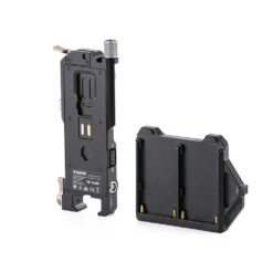 The Gold Mount, V-Mount Battery, or Dual NP-F Battery Plate can then be connected in order to mount batteries underneath the plate.