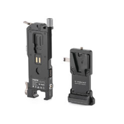 The Plate features (2) P-Tap output ports, (1) 2 Pin Lemo Port, and (1) USB-C, perfect for powering your camera via dummy battery cables or accessories like wireless follow focus motors.