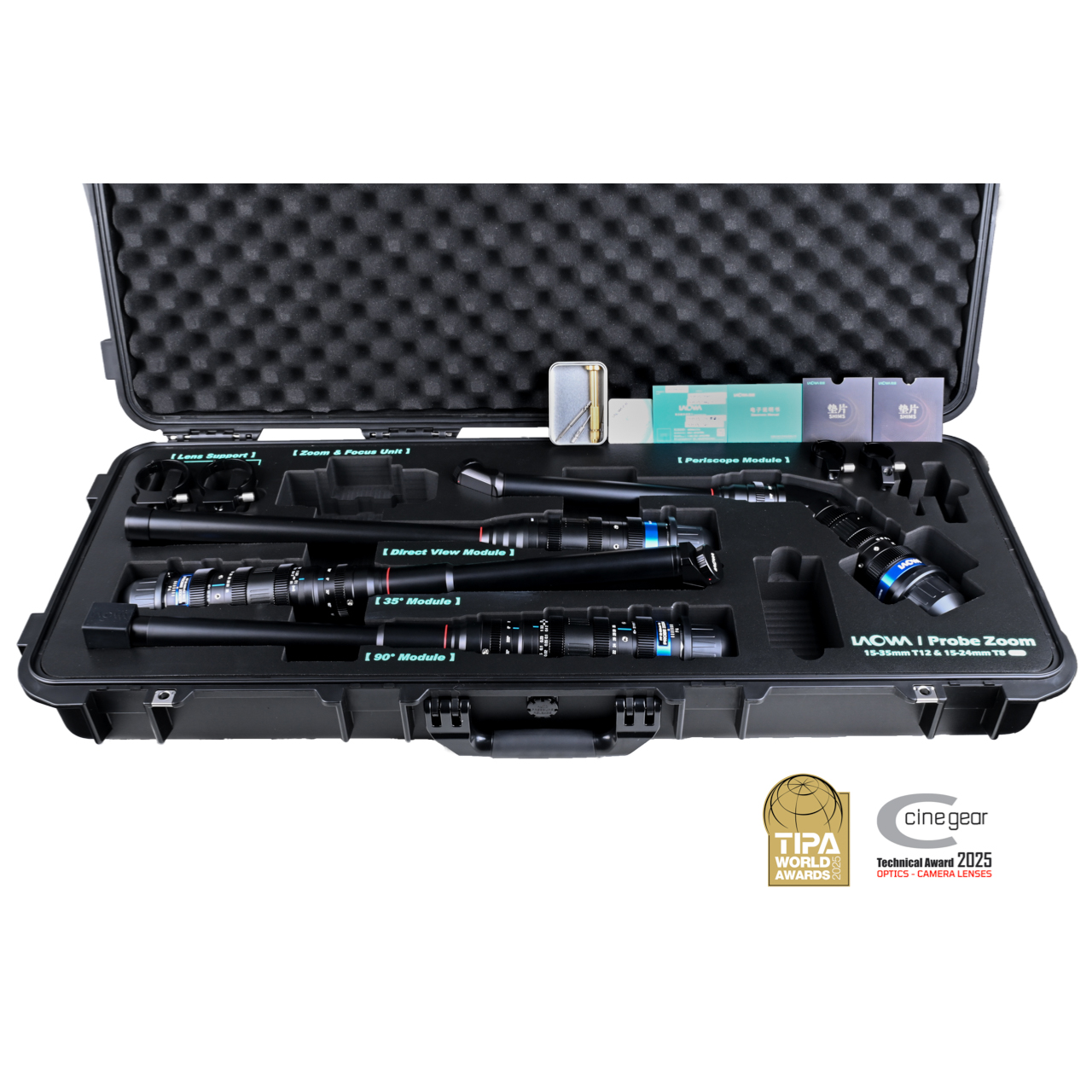 The Laowa Probe Zoom Macro Lens set is an innovative addition to Laowa’s industry-renowned Full Frame probe lens lineup, featuring the 15-35mm T12 and 15-24mm T8. Being the widest probe lens (15mm Ultra Wide Perspective) with the largest zoom range on the market, it boasts a 110.5° angle of view and a 2.3x zoom range for significant changes in magnification and perspective. The 40 cm-longest waterproof tubular design empowers filmmakers to capture deep, hard-to-reach subjects with unparalleled flexibility and top-notch image quality. The 4 Modules (Direct View/35-degree/90-degree/Periscope View) are meant to elevate your filmmaking process to the next level.